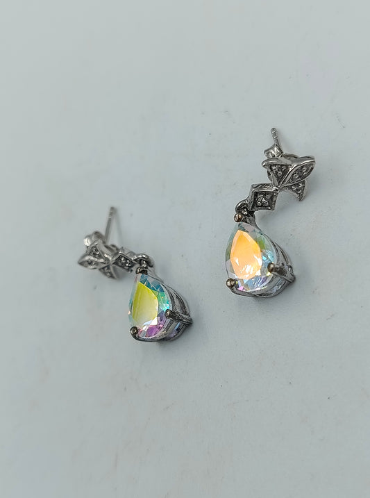 925 Silber Ohrringe mit irisierendem Stein Tropfenform elegant