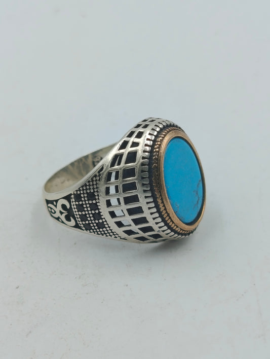 925 Silber Herrenring mit Türkis Stein Gr63 Vintage Orient Stil