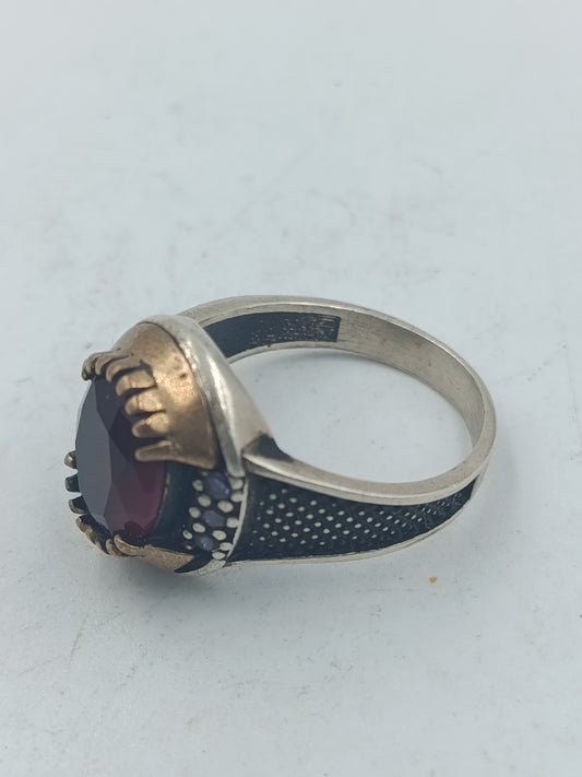 925 Silber Ring Herren Rotstein Bicolor Vintage Look