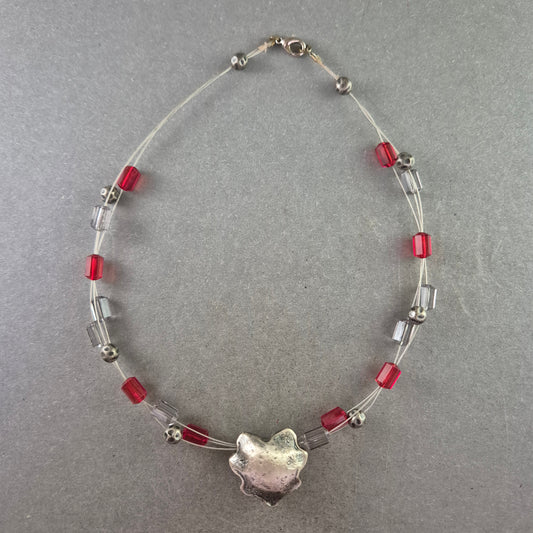 Ausgefallene Halskette mit Würfelperlen & silberner Formanhänger