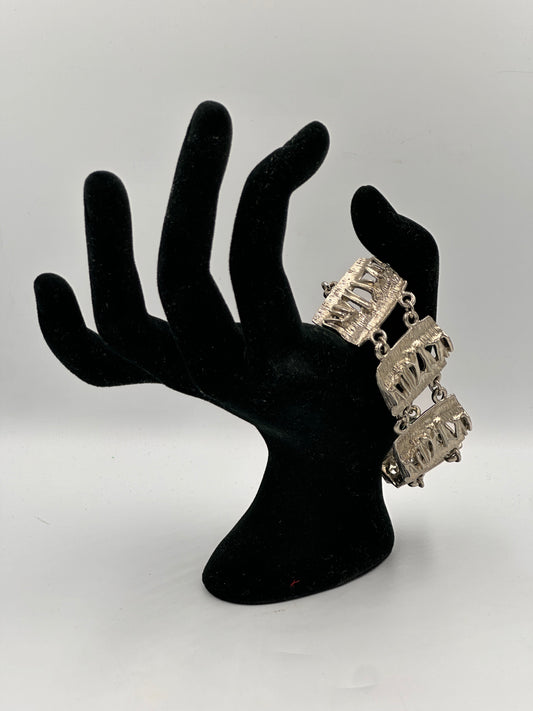 Breites Vintage Armband mit floralem Relief und markanter Gliederoptik