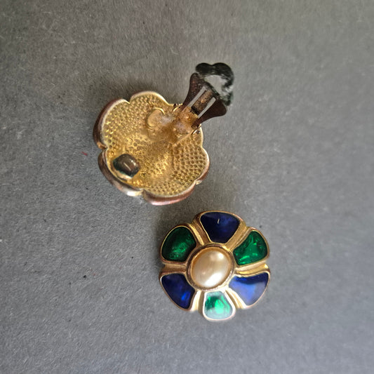 Bunte Clip-Ohrringe in Blütenform mit Perlenimitat