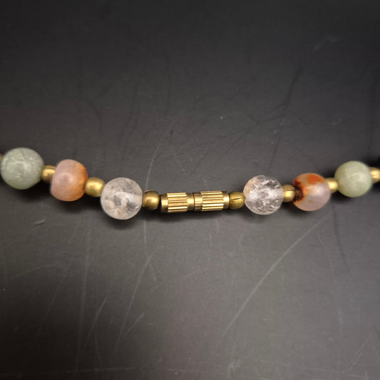 Bunte Edelstein Halskette – Handgefasste Natursteine in Goldoptik