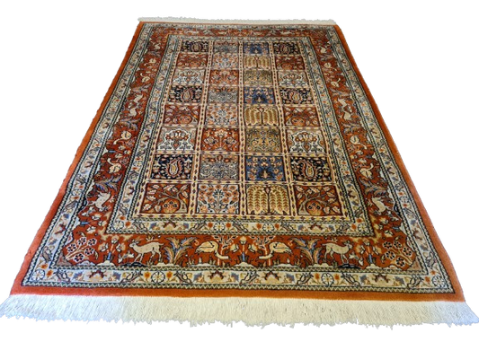 Edler Ghoum Perserteppich Handgeknüpfter Orientteppich mit Tiermotiven 153x103cm