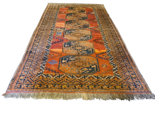 Antiker Handgeknüpfter Afghanischer Art Deco Orientteppich 200x112cm