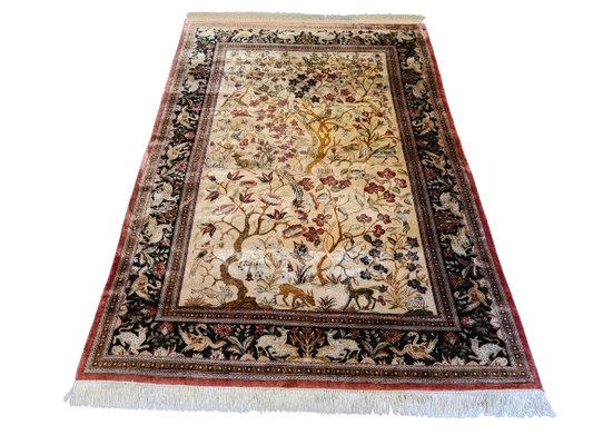 Handgeknüpfter Perser Ghoum Seidenteppich Paradiesmotiv 164x108