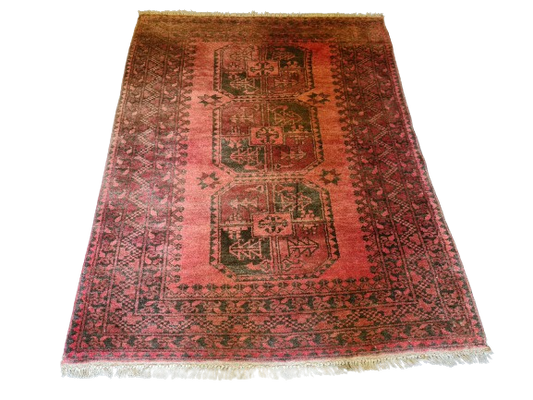 Antiker Handgeknüpfter Orientteppich – Afghanischer Art Déco Teppich 136x114cm