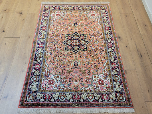 Ghom Seide auf Seide Teppich signiert florales Medaillon feine Knüpfung