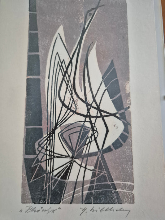 Original Farblithographie (XX) Abstrakte Geometrie Phönix Handsigniert