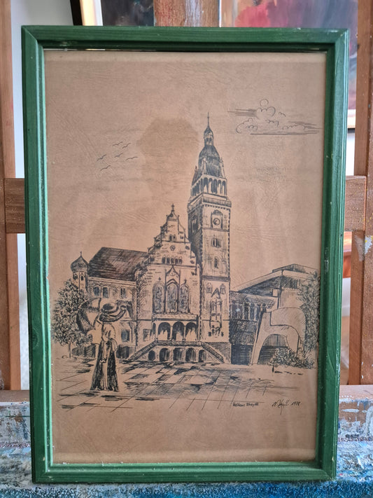 Lithographie Handsigniert N. Vogl (XX) Rathaus Rheydt 1978 22,5x32cm