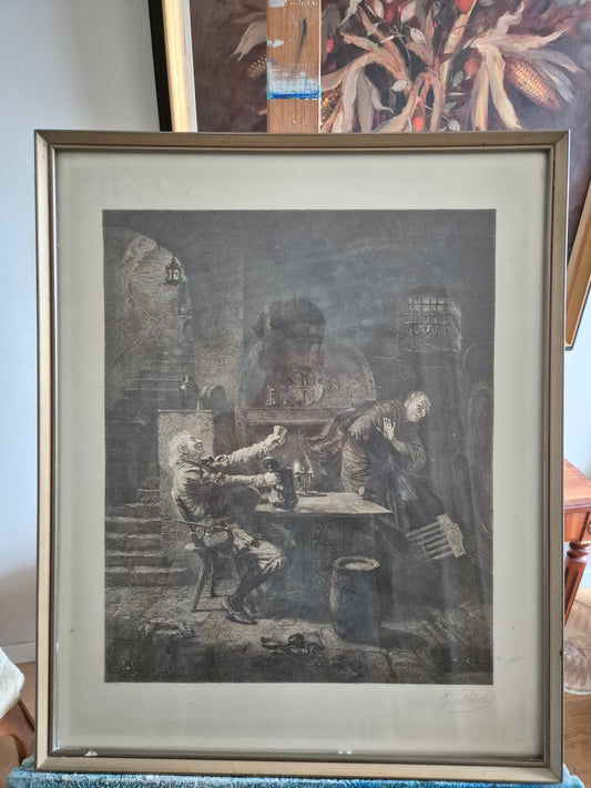 Eduard Theodor Grützner (1846-1925) Grafik Genreszene 45x55 cm
