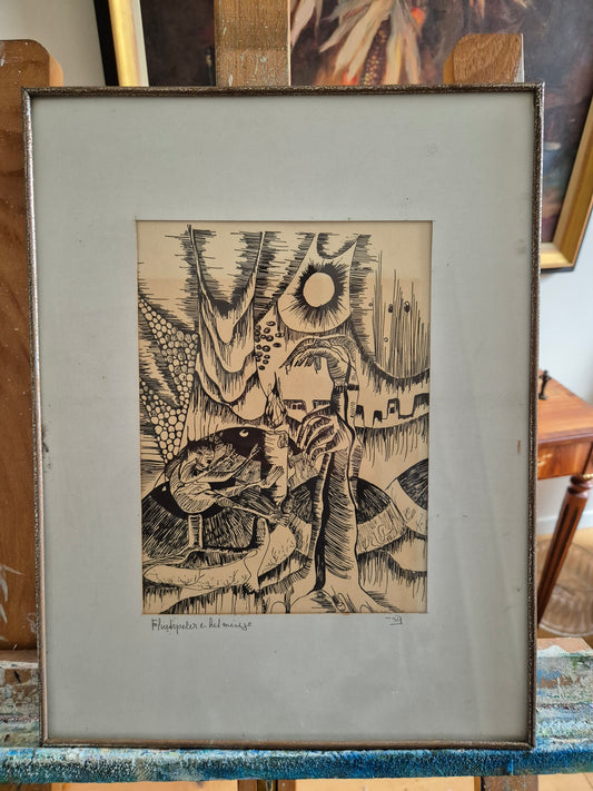 Original Grafik (1959) Surrealistische Szene Organischen Formen 32,5x42cm