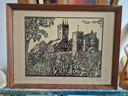 Original Linolschnitt Handsigniert und Nummeriert Burgansicht 42,5x32,5 cm
