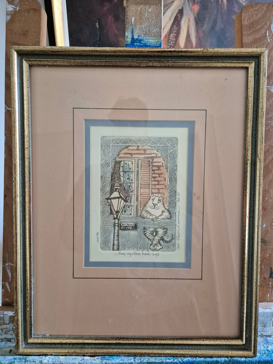 Original Radierung Katze mit Ballon Handsigniert Nummeriert 122/250