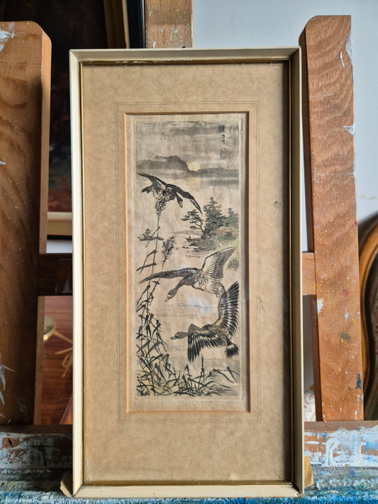 Original Radierung Blässgänse Handkoloriert Landschaftsszene