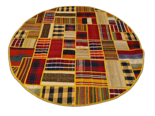 Moderner Handgeknüpfter Orientteppich Kelim Patchwork Teppich 152cm ⌀