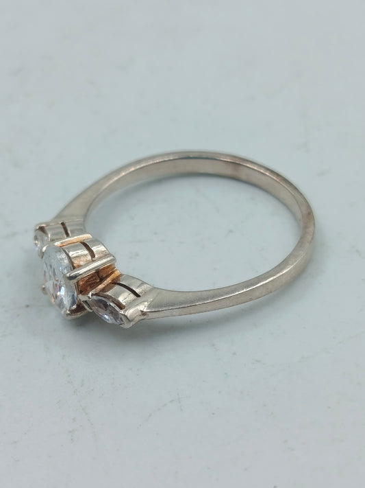 925 Silber Ring vergoldet mit funkelnden klarem Stein