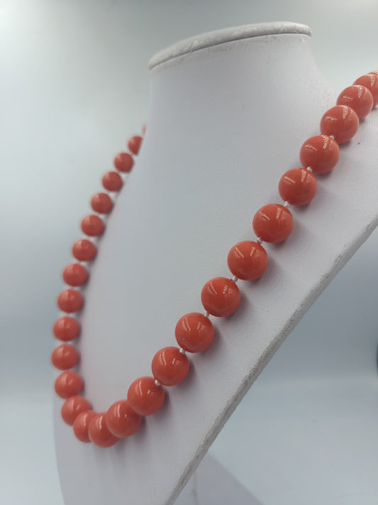 Korallenfarbene Perlenkette mit Goldverschluss 58 cm