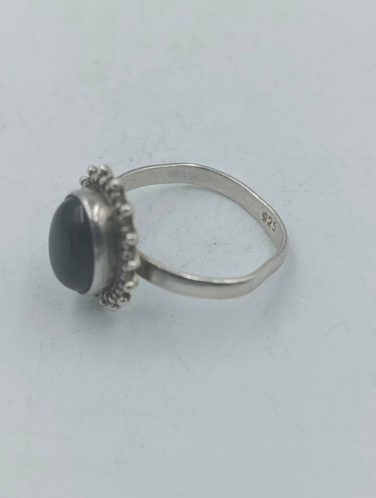 Silberring mit grossem schwarzen Stein im Vintage Look