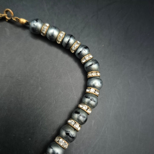Elegante Damen Kette – Dunkle Perlen und funkelnde Strass-Ringe