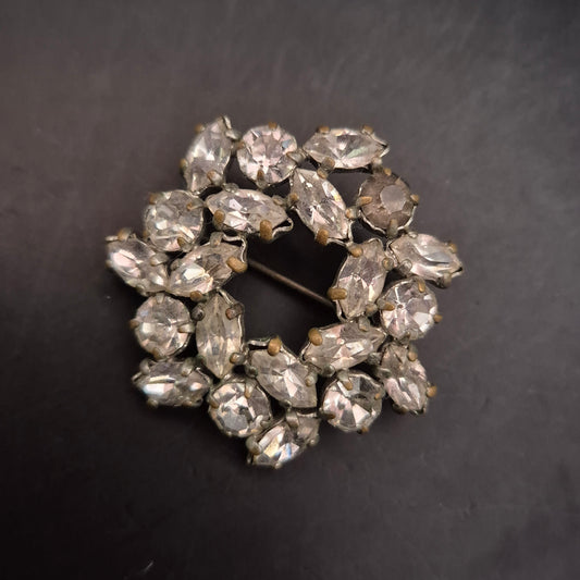 Vintage Damen Brosche – Blumenkranz mit großen Strass-Steinen
