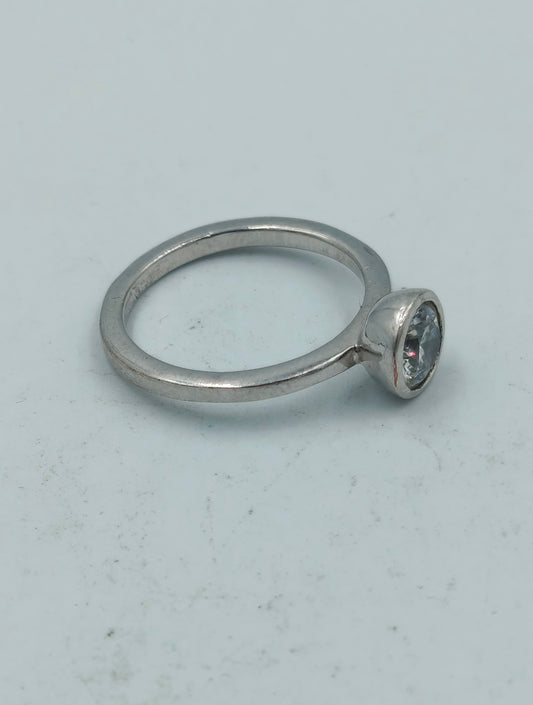 Silberfarbener Ring mit großem klarem Stein schlicht elegant Schmuck