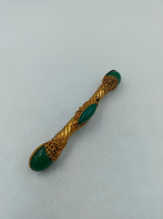 Vintage Brosche goldfarben mit grünen Steinen filigran Schmuck