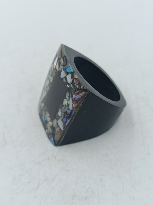 Moderner Ring mit schimmernder Mosaikoptik und klarer Formgebung