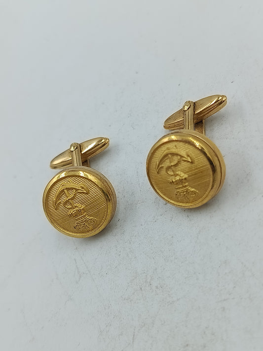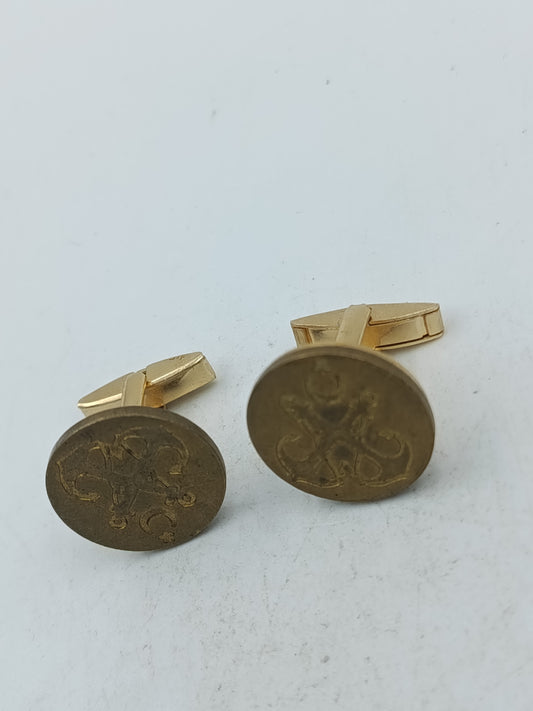Runde Manschettenknöpfe mit antik wirkendem Wappenmotiv in klassischem Goldton