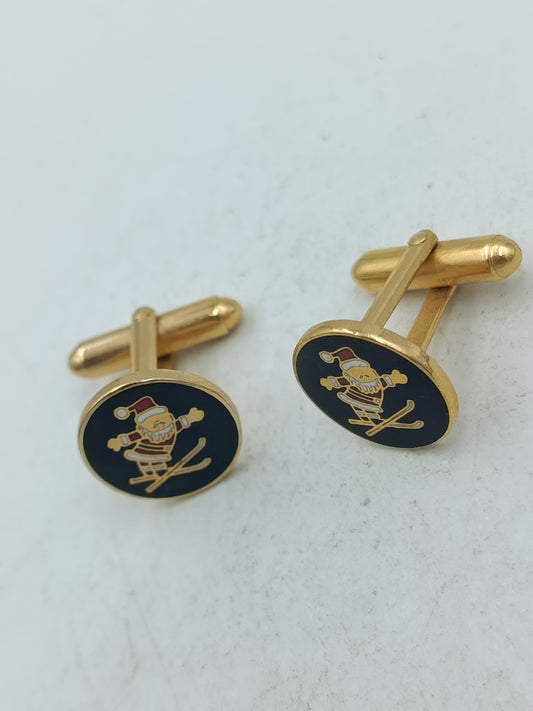 Skifahrer Weihnachtsmann Manschettenknöpfe in goldfarbener Optik mit verspieltem Motiv