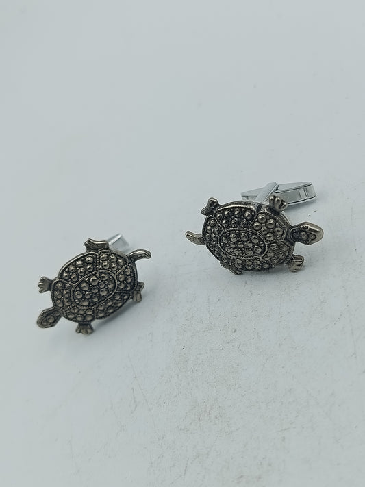 Schildkröten Manschettenknöpfe in silberfarbener Optik mit detailreicher Struktur