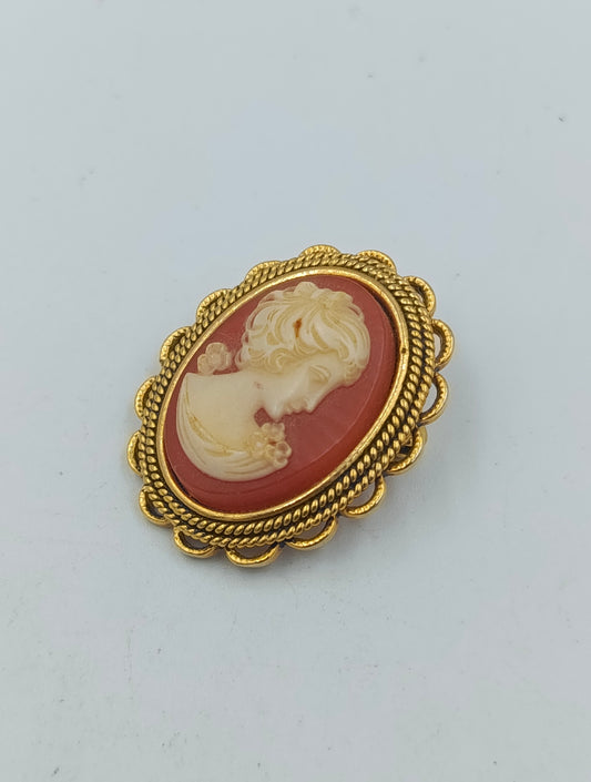 Vintage Brosche Kamee Dame goldfarben oval klassisch