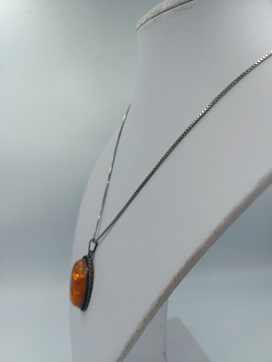 Silberkette mit Bernstein Anhänger Vintage Schmuck