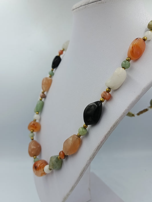 Edelstein Kette mit bunten Trommelsteinen und Messingperlen