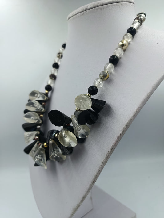 Vintage Halskette mit schwarzen und klaren Glasperlen 44cm