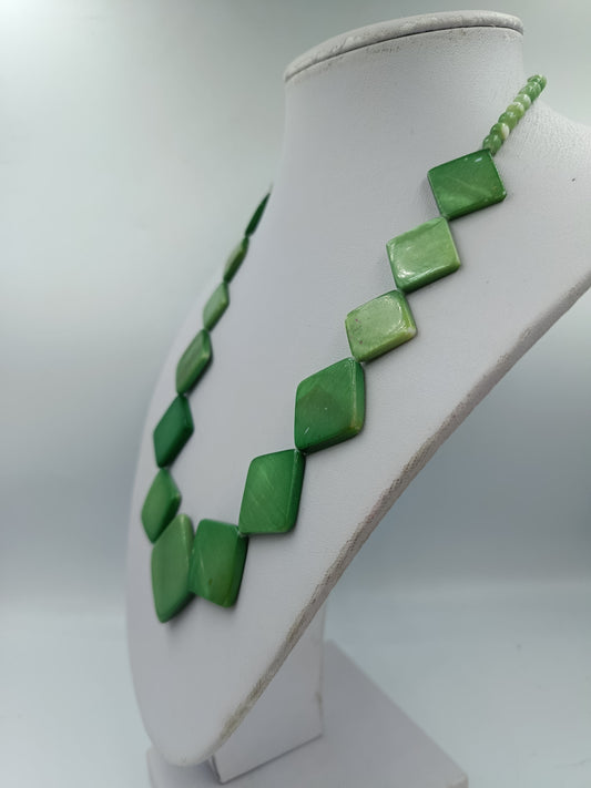 Grüne Muschelkern Kette mit quadratischen Elementen