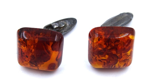 Vintage-Natur-Ostsee-Bernstein-Manschettenknöpfe in Silber