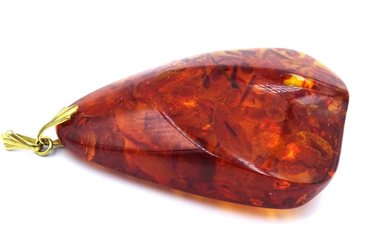 Großer Bernstein Anhänger mit AMD Vergoldeter Fassung