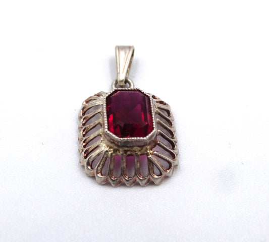 Jugendstil Silberschmuck 835er Silber Anhänger mit rot geschliffenem Stein