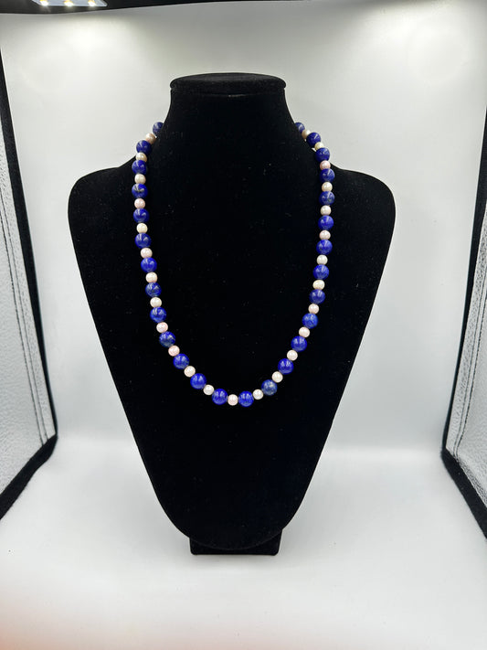 Blaue und weiße Lapislazuli Perlenhalskette mit Schraubverschluss