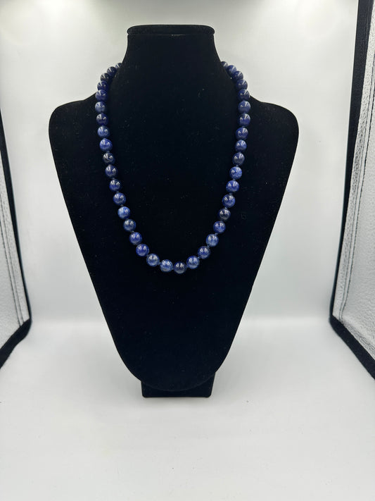 Vintage Blaue Lapislazuli Perlenkette mit goldfarbenem Schraubverschluss