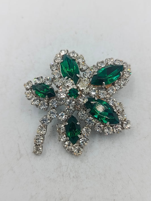 Blütenbrosche in leuchtendem Smaragdgrün mit funkelnden Kristallen