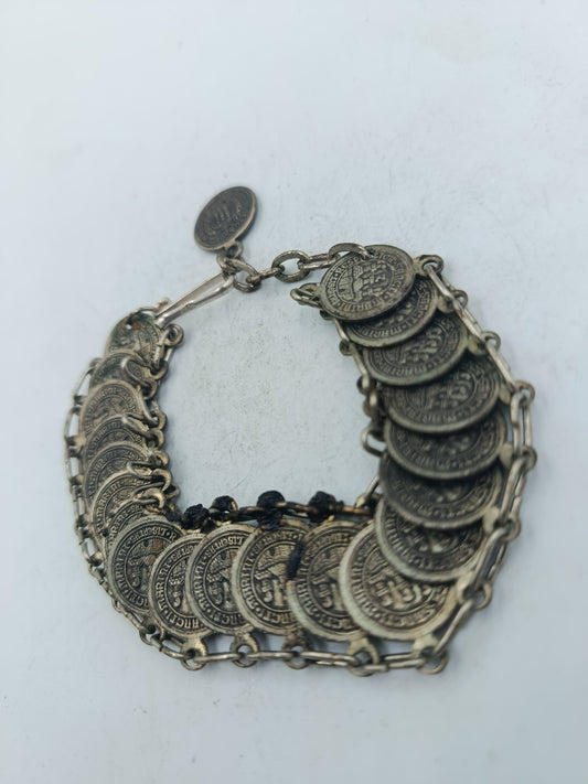 Münzarmband im antiken Stil mit historischen Motiven und markanter Kettenfassung