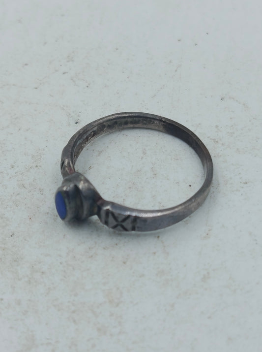 Schmaler Silberring mit tiefblauem Stein und kunstvoller Gravur im klassischen Design