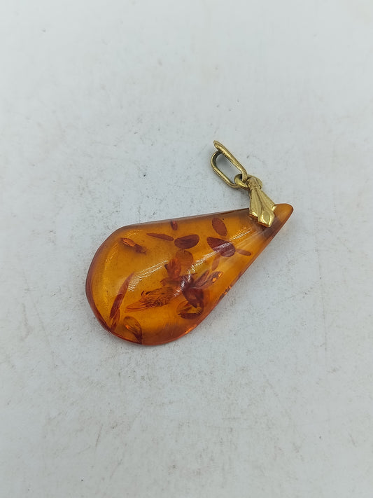 Bernsteinanhaenger in Tropfenform mit warmem Honigton und eleganter goldfarbener Oese