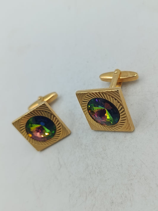 Quadratische Manschettenknoepfe mit schillerndem Kristall und goldfarben