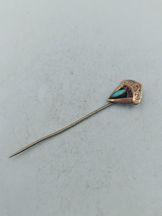 Art déco Nadel mit schimmerndem Opal und roten Akzenten