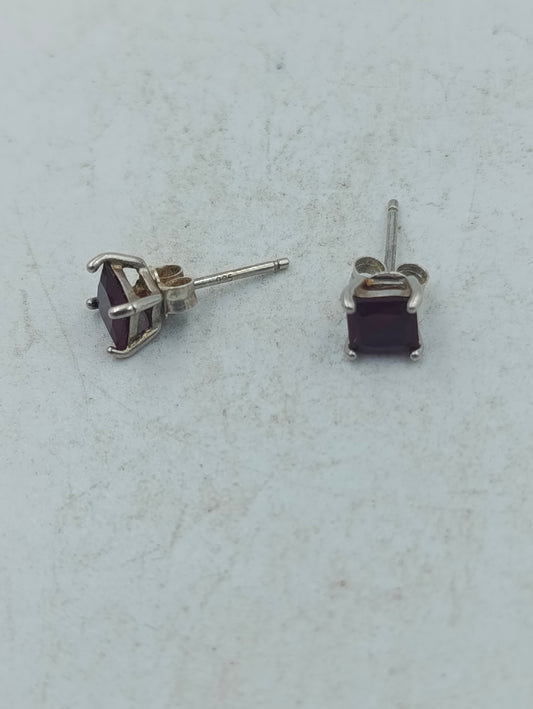 Silber Ohrstecker mit tiefrotem Stein im klassischen quadratischen Schliff
