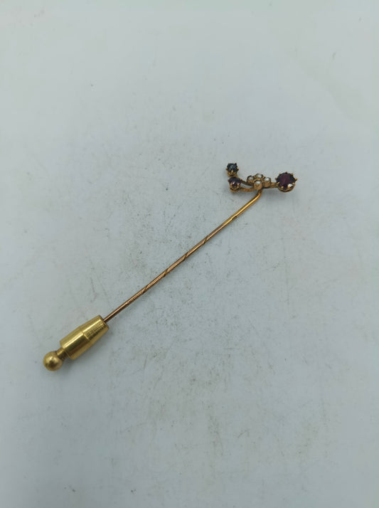 Elegante Anstecknadel mit rubinfarbenen Steinen und zarten Perlenakzenten