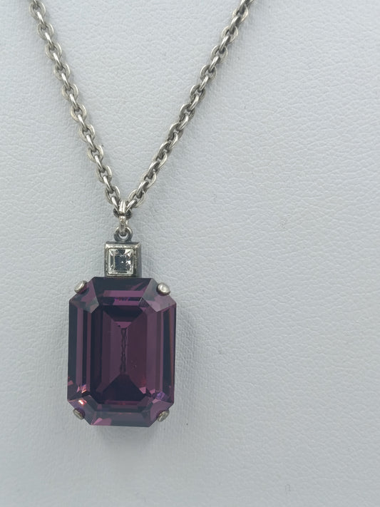 Ovale Brosche mit violettem Blattmotiv und goldfarbenen Zierketten
